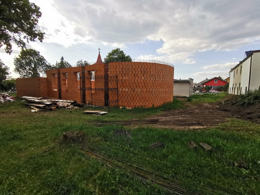 Na jar roku 2020 sa pozbierali potrebné financie a stavebné práce mohli pokračovať. Ako vidno aj na fotografiách, veľká časť murovania bola dokončená. Ďalším krokom je postavenie múrov veže a chóru. V najbližších dňoch bude hotový aj betónový veniec. Strešnú konštrukciu dokončia na jeseň roku 2020.