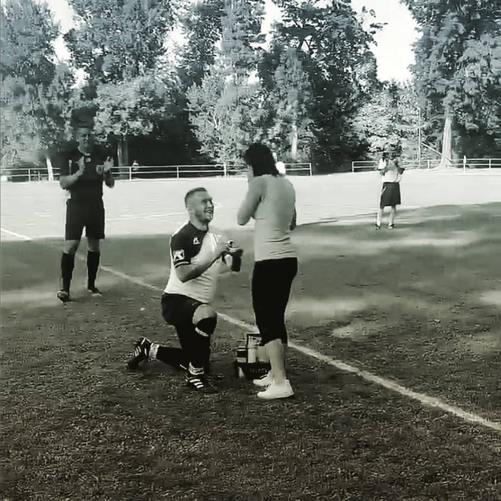 A vasárnapi felsőszemerédi labdarúgó mérkőzés kapcsán most kivételesen senki sem az eredményről beszél, ugyanis a meccs folyamán egy rendhagyó esemény történt. Ez alkalommal a sérülést szimuláló csapatkapitány, Kluka Rudolf, piros lap helyett tapsot kapott a bírótól és a közönségtől is. Köszönhető ez annak, hogy a mérkőzés első percében a focista megkérte barátnője, Brocskó Katalin kezét.