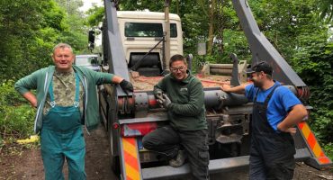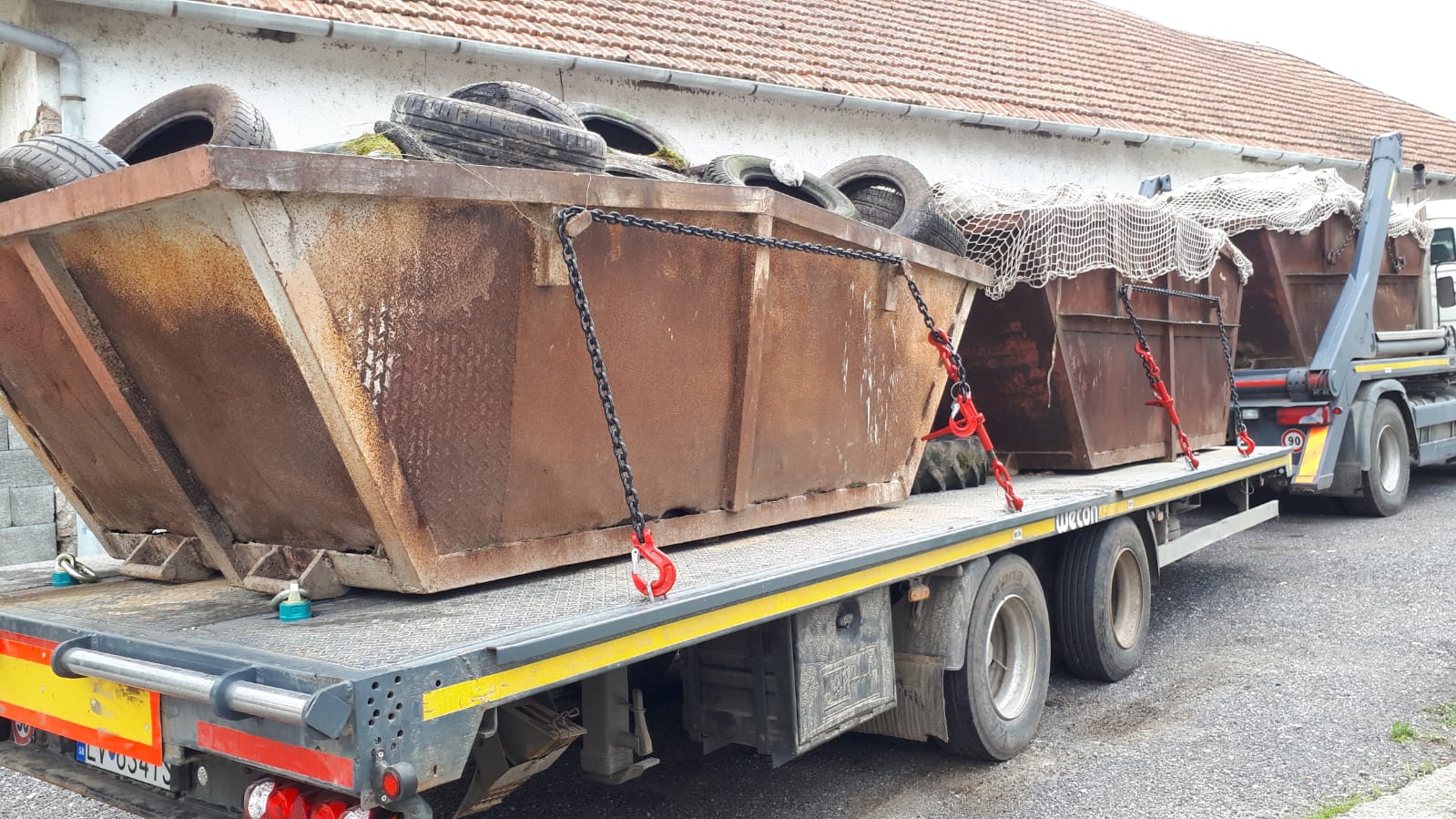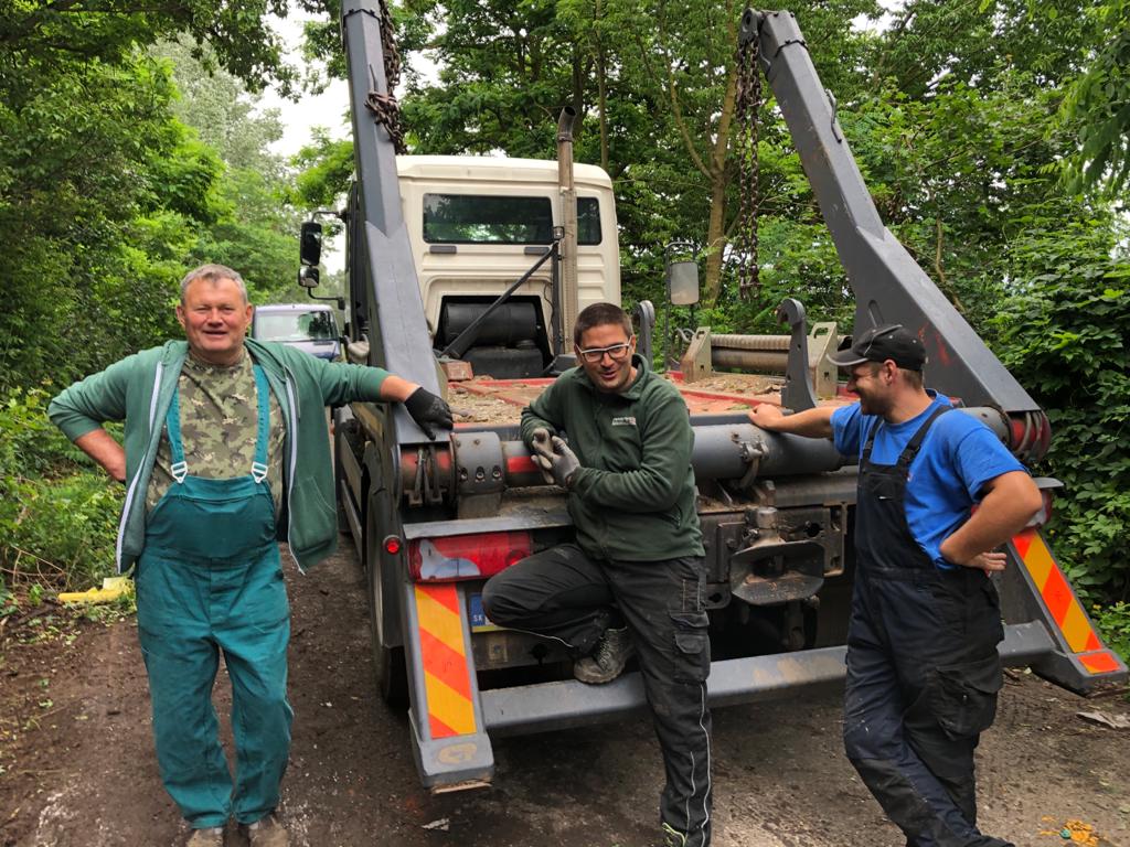 Piatkový deň sme ukončili odvozom troch obrovských kontajnerov.